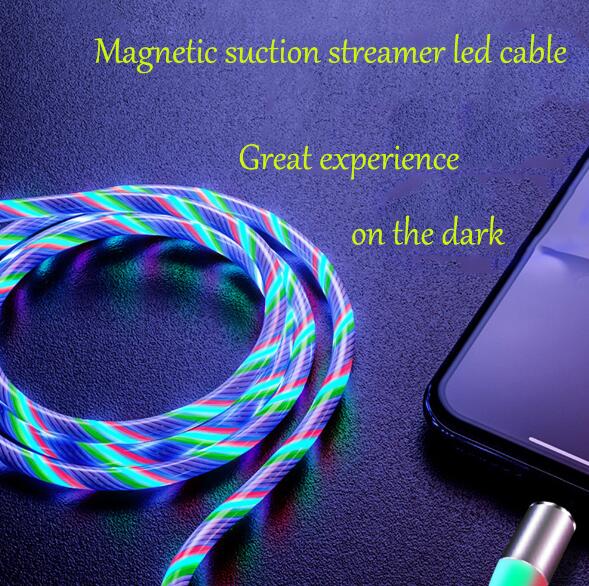 Abctay Data Line LED Magnetic Micro USB Cable Android Type-C IOS Fast Charging Cable for Mobile Phone blue_Ios interface