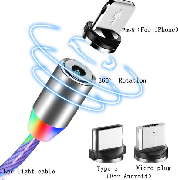 • Abctay Data Line LED Magnetic Micro USB Cable Android Type-C IOS Fast Charging Cable for Mobile Phone blue_Ios interface