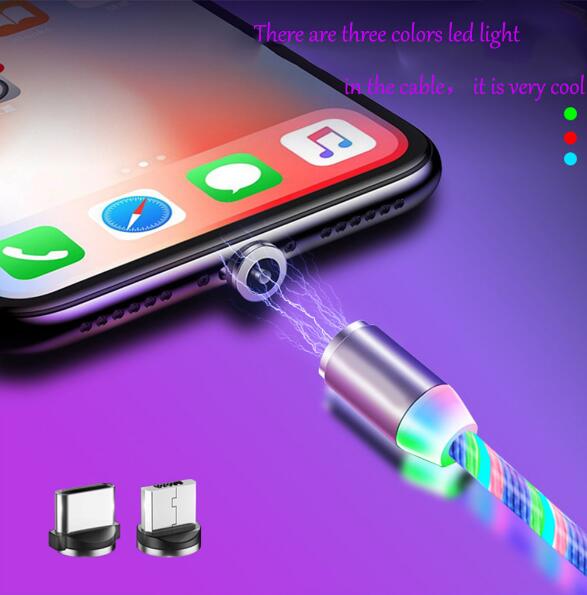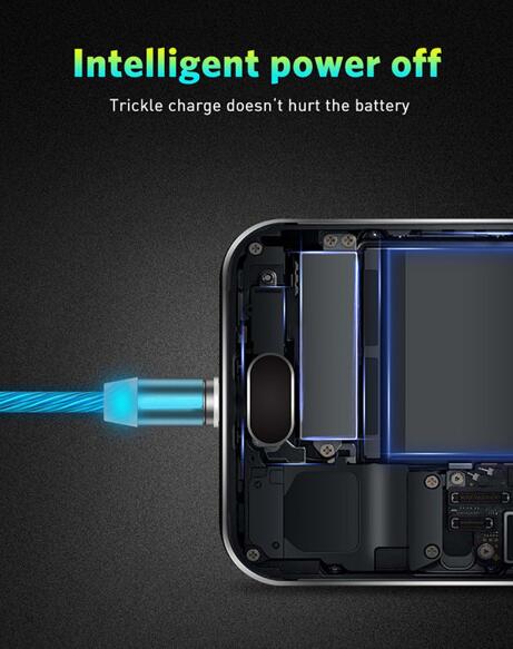Magnetic suction charging cable, flowing LED lighting.