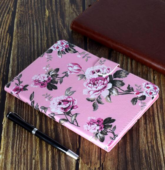 Abctay Laptop Protective Case Smart Stay Color Painted PU Cover with Front Snap Pink flower For iPad Pro 11