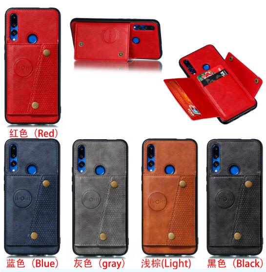 Abctay prime 2019 PU Leather Shockproof Cell Phone Case Anti-dust Phone Case with Double Buckle Card Slot Pocket black For HUAWEI Y9