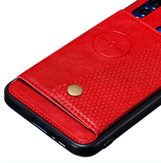 Abctay prime 2019 PU Leather Shockproof Cell Phone Case Anti-dust Phone Case with Double Buckle Card Slot Pocket red For HUAWEI Y9