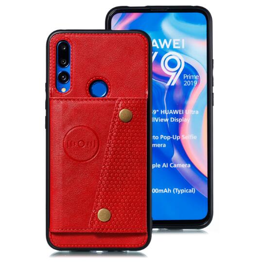 • Abctay prime 2019 PU Leather Shockproof Cell Phone Case Anti-dust Phone Case with Double Buckle Card Slot Pocket red For HUAWEI Y9