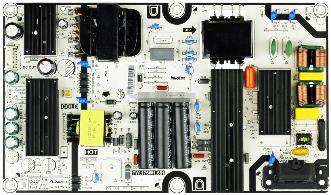 PART NUMBER:PW.176W1.681 BOARD NUMBERS:G19040187, E347210 MODEL NUMBERS: V655-G9 PART TYPE: Power Supply TV TYPE AND SIZE: LED, 65" MFR PART NUMBER: Vizio PW.176W1.681