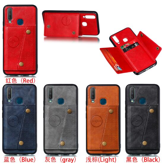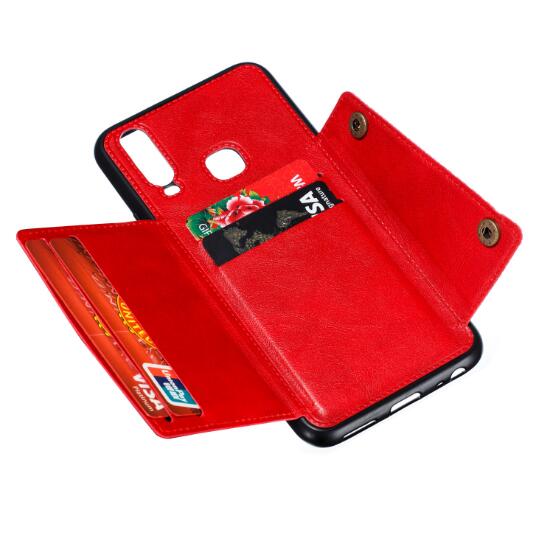 • Abctay Shockproof Double Buckle Wallet Case Cell Phone Case PU Leather Flip Stand Phone Cover With Card Slots red For VIVO Y17