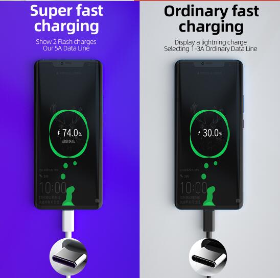 Environmentally friendly pure copper wire core, PVC wire, the wire is soft, durable, not easy to knot, delicate feel, high-grade texture, to solve the trouble of slow charging.