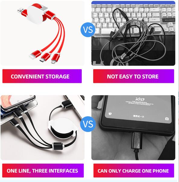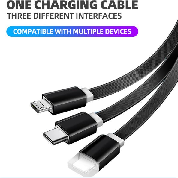 Micro,iPhone Multifunction Fast Charging Cable for Android, iOS and Type C Devices, 3 in 1 Charging