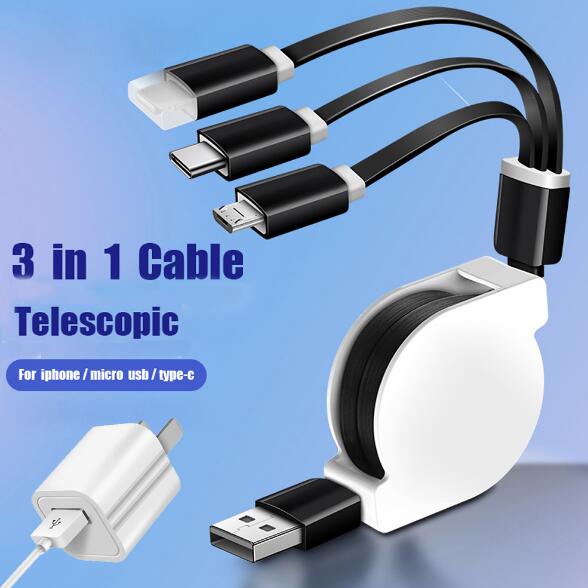 • Abctay SIMU Universal Multifunctional Telescopic One-for-Three Mobile Phone Charging Data Cable Set white