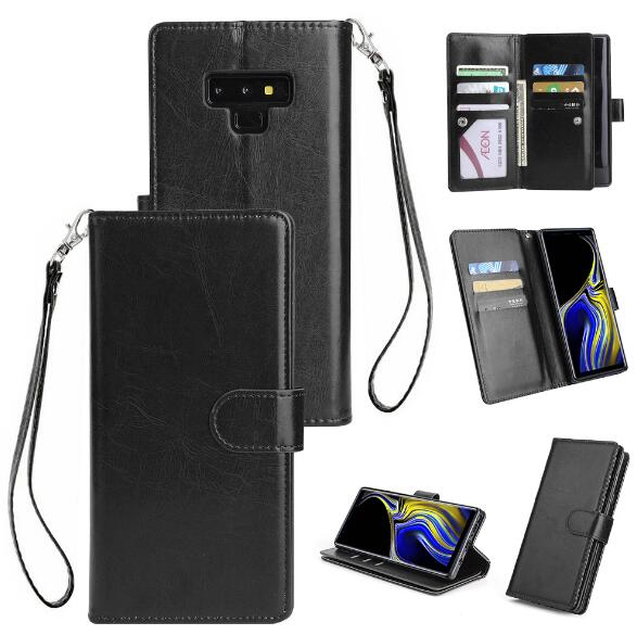 • Abctay with 9 Card Slot Lanyard Bracket Buckle brown For Samsung Note 9 PU Full Protective Cover