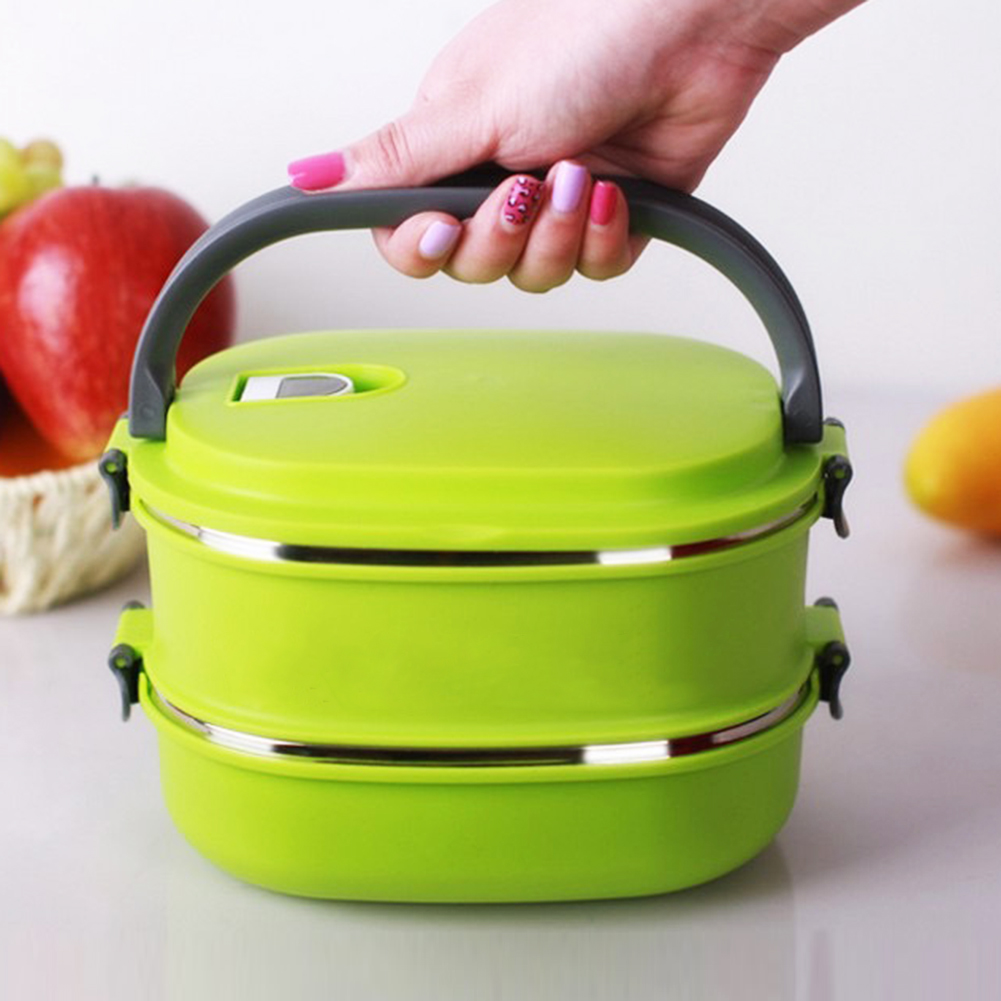 100% brand new and high quality Material: Stainless steel Color: Green Layer: 1/2/3 layer Capacity: 1 layer---0.9L 2 layer---1.8L 3 layer---2.7L Size: 1 layer---20cm X 15cm X 7.5cm (approx.) 2 layer--20cm X 15cm X 13.5cm (approx.) 3 layer--20cm X 15cm X 18.5cm (approx.)