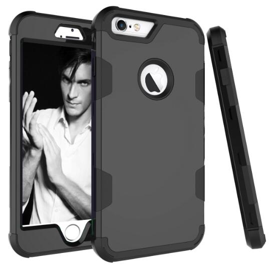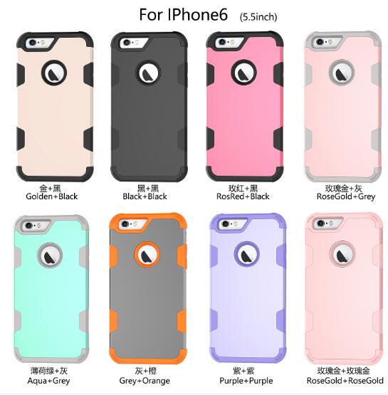 Wholesale 2 in 1 Hit Color Tri-proof Shockproof Dustproof Anti-fall Protective Cover Back Case black For iPhone 6 plus/6S plus PC+ Silicone