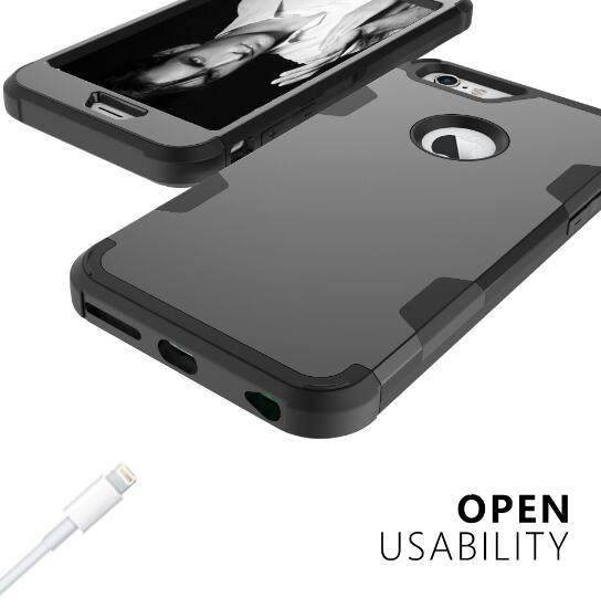 • Wholesale 2 in 1 Hit Color Tri-proof Shockproof Dustproof Anti-fall Protective Cover Back Case black For iPhone 6 plus/6S plus PC+ Silicone