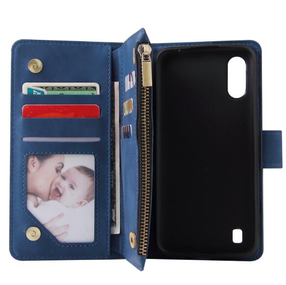 Wholesale Case Smartphone Shell Wallet Design Zipper Closure Overall Protection Cellphone Cover 2 blue For Samsung A01