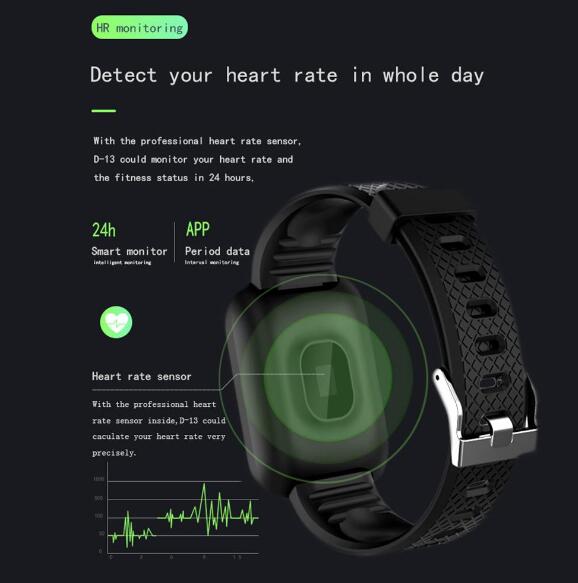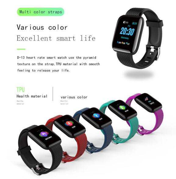 • Wholesale for Android iOS black D13 Smartwatch Heart Rate Blood Pressure Monitor Tracker Fitness Watch Smart Wristband Sport