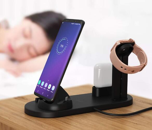 The charging dock can be freely rotated by 360 degrees. To charge 4 device at the time, QC2.0/3.0 Adapter is needed.