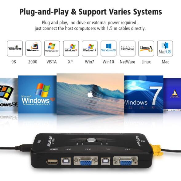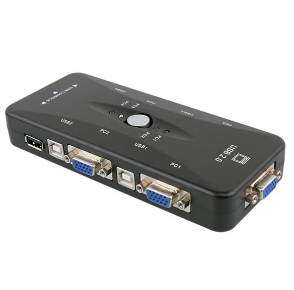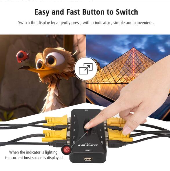 Switch between computers by press a button on the KVM switch.