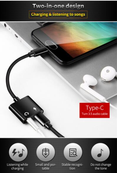 2 in 1 Type C audio charging adapter cable.