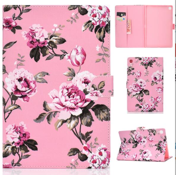 Wholesale Laptop Protective Cover Cartoon Color Painted Smart Stay PU Cover with Front Snap Pink flower
