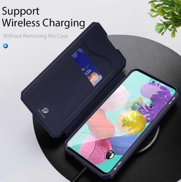 • Wholesale Leather Mobile Phone Cover Magnetic Protective Case Bracket with Card Slot blue DUX DUCIS For Samsung A51