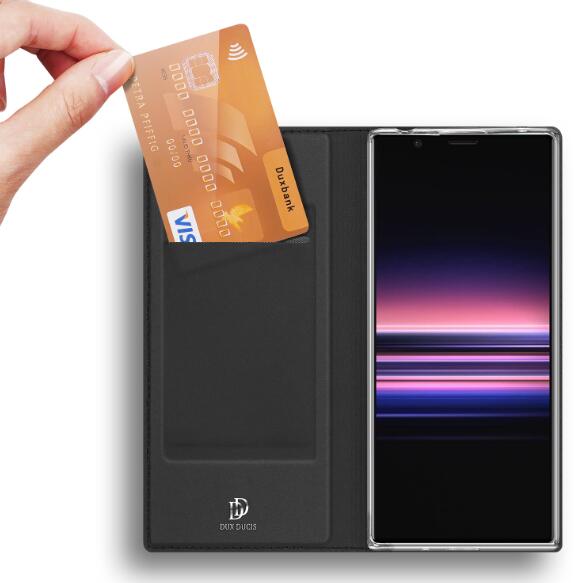 Wholesale Leather Mobile Phone Cover Magnetic Protective Case Bracket with Cards Slot black_Sony Xperia1 II DUX DUCIS For Sony Xperia1 II/Xperia10 II