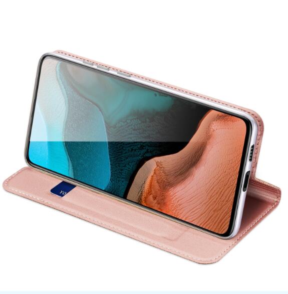 • Wholesale Leather Mobile Phone Cover Magnetic Protective Case Bracket with Cards Slot Pink DUX DUCIS For Redmi K30 Pro