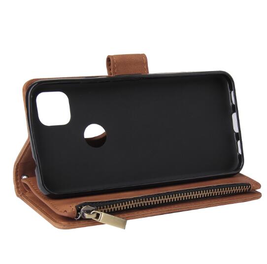Wholesale Leather Mobile Phone Cover with Cards Slot Zipper Purse Phone Bracket 4 brown For Google Pixel 4A
