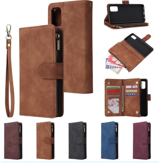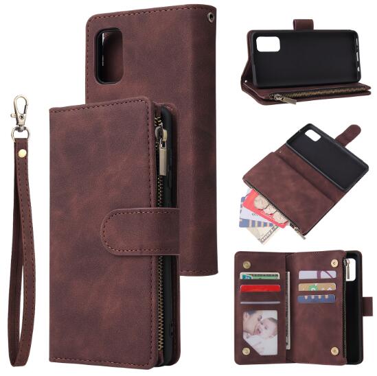 Wholesale Mobile Phone Case Wallet Design Zipper Closure Overall Protection Cellphone Cover 3 brownFor Samsung A41