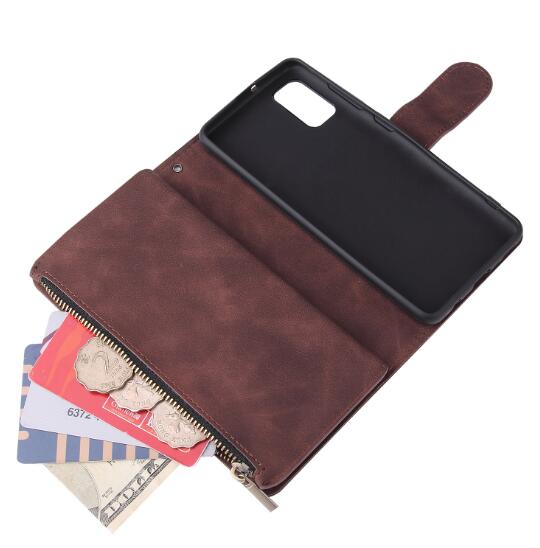 • Wholesale Mobile Phone Case Wallet Design Zipper Closure Overall Protection Cellphone Cover 3 brownFor Samsung A41