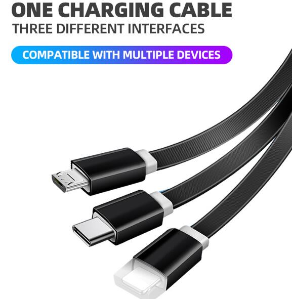 Micro,iPhone Multifunction Fast Charging Cable for Android, iOS and Type C Devices, 3 in 1 Charging