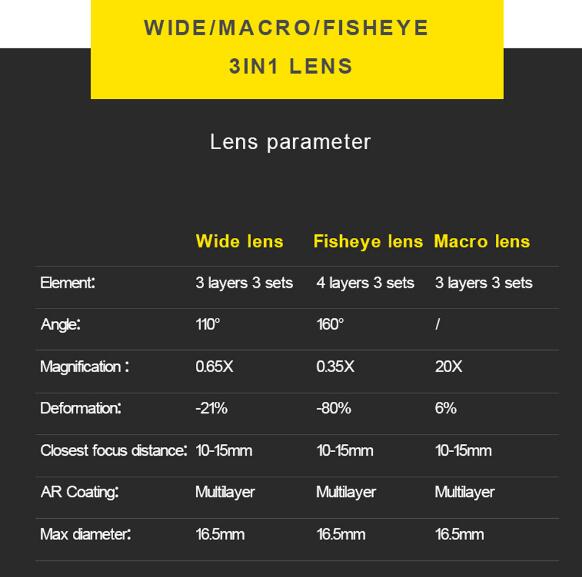 Fish lens: 160 degree
