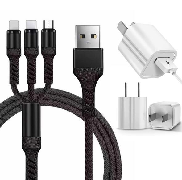 Wholesale Mobile Phone Peripheral Safe Charging Data Cable Set white SIMU 3-in-1 Weave 1.2M
