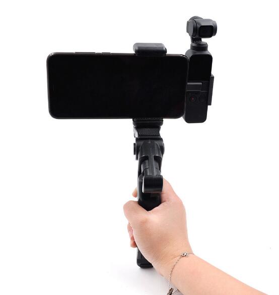 Handheld Handle as Headheld for shooting. Unfold: Tripod, place on the table / ground for Shooting. Easy installation! Allright for Fold or Unforlded the Osmo Pocket