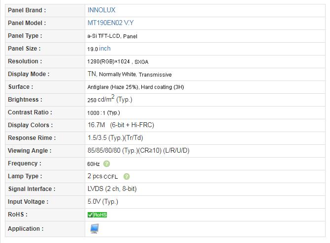 Model: MT190EN02 V.Y