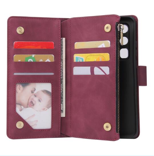 Wholesale Zipper Purse Leather Mobile Phone Cover with Cards Slot Phone Bracket 3 brown For HUAWEI P40 pro plus